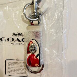 COACH TRIGGER SNAP BAG CHARM KEY FOB W/ CHERRY PRINT: Red,white CZ088