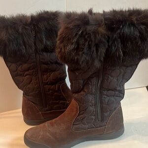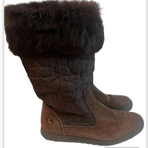 COACH Talen Genuine Rabbit Fur Cuff Quilted Boots Women's Size 6 M Brown