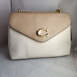 COACH Tammie colorblock shoulder bag crossbody cream and tan with black accent