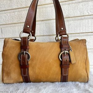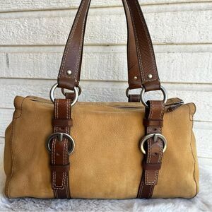 COACH Tan Brown Y2K Buckle Nubbuck Bleecker Hampton Shoulder Bag Tote 10895