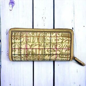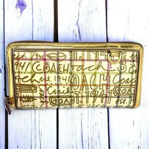 COACH Tattersall Large Zip Around Wallet Gold Signature Coated Canvas & Leather
