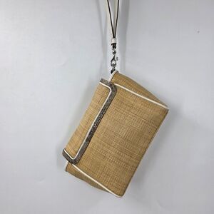 COACH Taylor City Straw Clutch with Snake Print Trim Wristlet