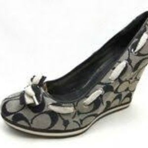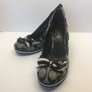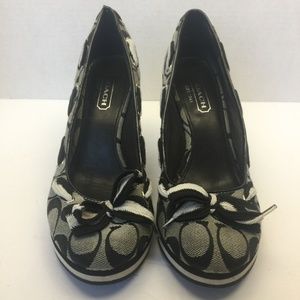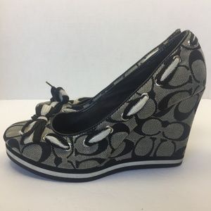 COACH Tena Jacquard Logo Wedges Black & White 7.5M