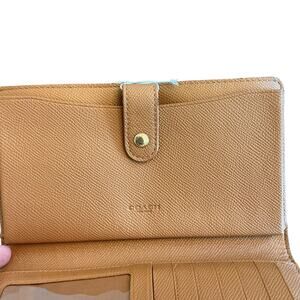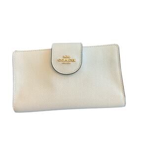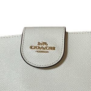 COACH The Phone Wallet Bi Fold Crossgrain Leather Chalk White/Camel Women’s NWOT