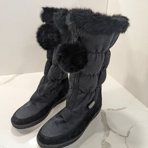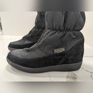 COACH Theona black logo front zip rabbit fur slouchy Winter Waterproof boots size 7.5B