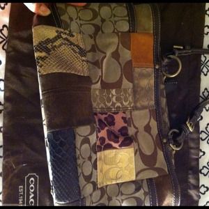 AUTHENTIC Coach Fall Patchwork tote. Beautiful golden/brown leather. In good conditon w/little bit soil on suede patch. No rips or tear. Once its cleaned and polish it will look great with any outfit.