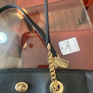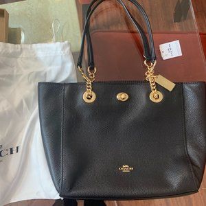 COACH Turnlock Chain Tote Bag New With Tag Black Pebbled Leather NWT