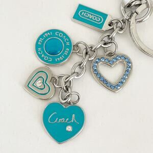 COACH Turquoise Silver Heart Bag Charm Keychain