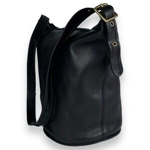 COACH VINTAGE 80S EXTRA LARGE BLACK GLOVETAN LEATHER CLASSIC DUFFLE SAC FEED BAG