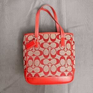 COACH VINTAGE RARE MINI LUNCH TOTE IN RED MONOGRAMMED SIGNATURE CANVAS 6087