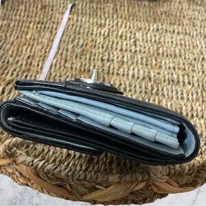 COACH VINTAGE TURN-LOCK WALLET GENUINE GLOVE TANNED BLACK LEATHER BLUE INTERIOR