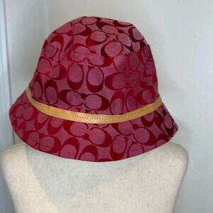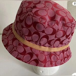 COACH VINTAGE Y2K SIGNATURE CRUSHER BUCKET HAT CANVAS WITH LEATHER STRAP