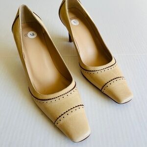 COACH VTG Sz 7.5 Camel Color Leather Cathy Spectator Pump Heels Shoes Slip On