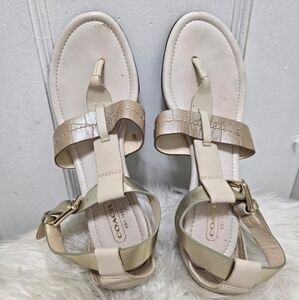 COACH Velvet Vachetta Leather Wedge Sandals Women's Size 6.5B🌴