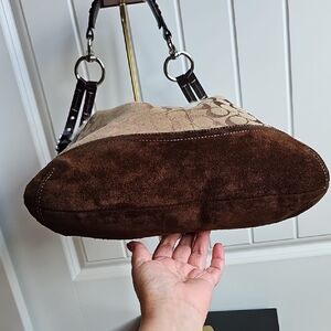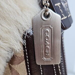 COACH Vintage 2005 Signature Hobo Canvas, Suede & FAUX Fur handbag F052-8K48.