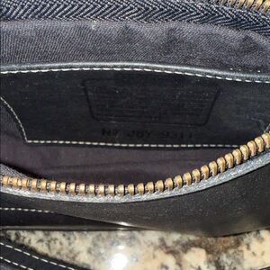 Chic Coach shoulder bag in dark blue leather. Features a sleek design with a sturdy handle. Perfect for everyday use.