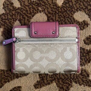 COACH Vintage Beige and Pink Wallet, multiple cards for cards and cash, one back zip pocket