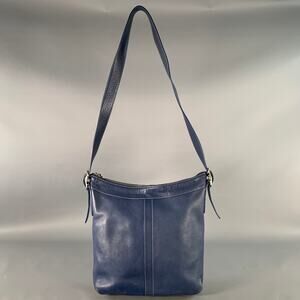 COACH Vintage Blue Contrast Stitch Leather Crossbody Handbag