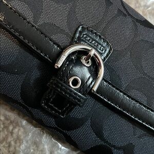 ๐ COACH Vintage Buckle Checkbook Wallet Black Grey NWT *FLAWED* L๐K