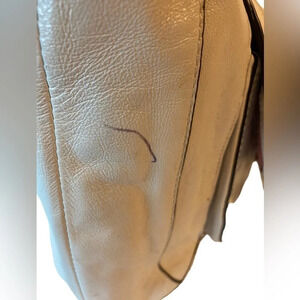 The leather is supple. Given its vintage age, this bag is in good condition, with two flaws shown in the last two pictures: a pen mark on the bottom and some small staining inside the interior.