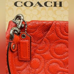 Elevate your collection with this rare COACH Vintage GRM Op Art Quilted Patent Leather Wristlet, a highly sought-after piece for collectors and fashion lovers alike. Crafted in vibrant red quilted patent leather, it features the timeless Op Art “C” motif with a bold glossy finish and luxurious silver-tone hardware.