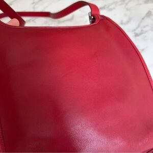 COACH Vintage Small Hippie Flap Leather Crossbody Bag 9153 Red Silver Nickel 90s