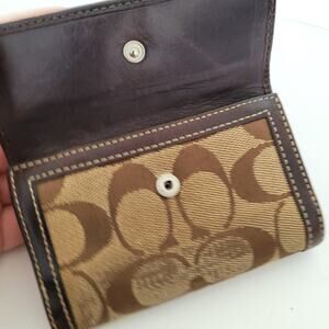 COACH Vtg Card Bill Holder Brown Small Small Mini Wallet Geniue Leather Canvas