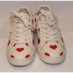 COACH WOMEN'S LOWLINE VALENTINE'S LEATHER HEART SNEAKERS WHITE RED SZ 6 NIB