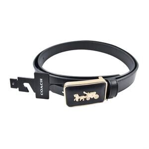 COACH WOMEN'S XL LEATHER BELT GRACE PLAQUE BUCKLE 25 MM IN GOLD & BLACK