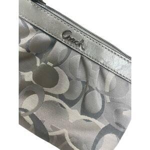 COACH WRISTLET BAG CANVAS LEATHER SIGNATURE GRAY PLEATED AESTHETIC KAWAII