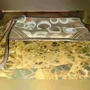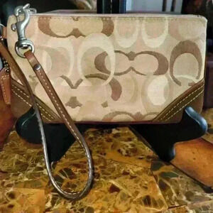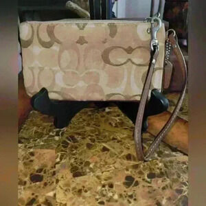 Coach wristlet with hangtag in good used condition. Please see all photos for more details and description of the wristlet. Thanks