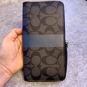 COACH Wallet In Charcoal And Slate, Blue Stripe, Zips Around 8” X 4”, NWOT, Mens