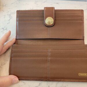 COACH Wallet Tan Leather with Signature Jacquard Stripe