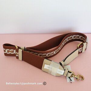 BRAND NEW WITH TAGS. Ivory multi color. An adjustable long webbing strap to update your bag featuring a chain stripe motif with two dog-leash clips to attach it to your bag for shoulder or crossbody wear.