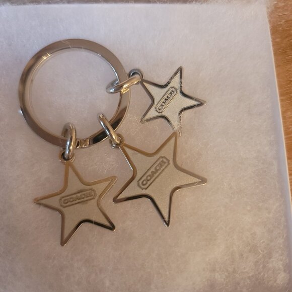 COACH - White & Silver-Toned Triple Starred Keychain (Brand New)(Gift box incl.) One of my favorites. Makes a great gift. Let someone know they are a "star" in your life.