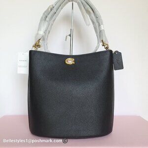 COACH Willow Polished Pebbled Leather Bucket Shoulder Bag- Black ⭐