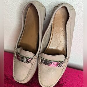 COACH 🤎 Womens Beige Leather Moc Toe Slip-On Loafers, Silver Plate Buckle (6.5)