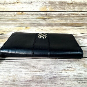 COACH Womens Black Slim Accordion Leather Zip Around Minimalist Wallet