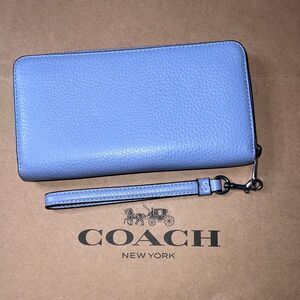 COACH Women's Blue Zip-Around Pebble Leather Wallet Credit Card Holder C4451