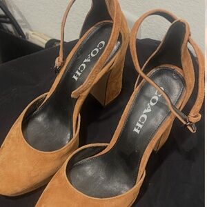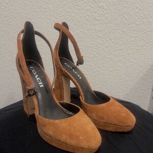 COACH Women’s Chrystie Lux Suede Platform Chunky Heel Pump – Size 9