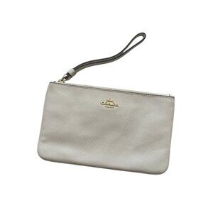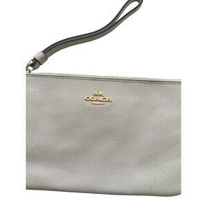 Elegant and versatile, this COACH wristlet clutch is crafted from premium cream leather. Perfect for carrying essentials, it adds a touch of sophistication to any outfit. Ideal for both day and night use.