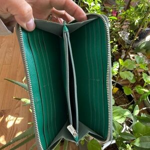 COACH Women's Crossgrain Leather Accordion Zip Wallet Gray With Green Interior