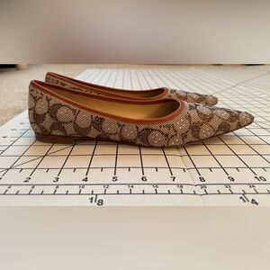 Experience timeless elegance with Coach's Women's Daphne Loafer Flat, designed for both style and comfort. These versatile loafers feature a signature Coach 'C' logo print and a sleek pointed toe, making them perfect for casual or business casual wear. The solid brown trim adds a touch of sophistication to this classic design. No box, but no signs of wear.