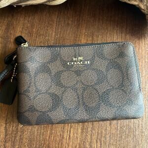 COACH Women’s Double Zip Wallet Wristlet Brown w/ Gold Hardware