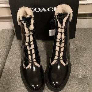 COACH Women's Leighton Signature Shearling Booties, size 10
