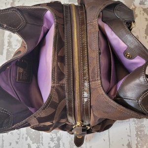 COACH Women's MAGGIE Brown Signature C Monogram Textile Hobo Shoulder Handbag M