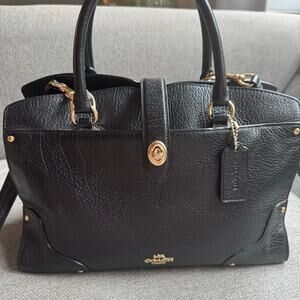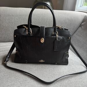 COACH Womens Mercer Satchel Hand Shoulder Bag Black Grain Leather Gold Turn Lock
