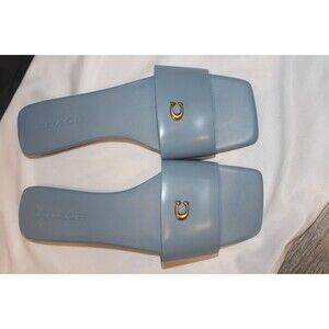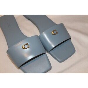 COACH Women's Sculpt C Logo Leather Slide Flat Sandals Bluebell NIB