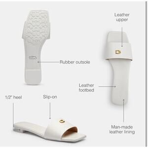 COACH Women's Sculpt C Logo Leather Slide Flat Sandals Sz 8 optic White NIB