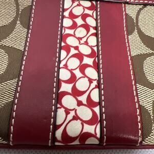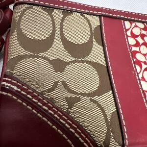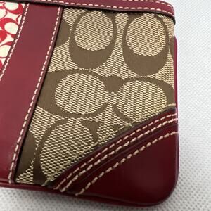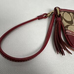 COACH Wristlet Purse Brown Signature Red Leather Trim
